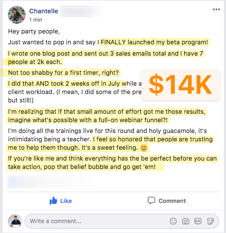 “It was easily the best investment I made in my business. I can’t think of something that paid off in this way. Just the pre-selling of my new program allowed me to step away from 1-on-1. It’s exactly what you said it would be and just as challenging as you promised it would be.”