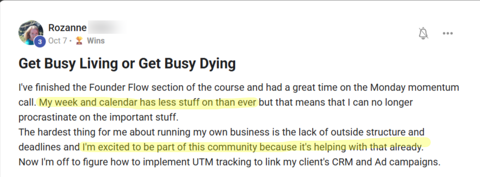 Until then, I’d only worked with clients — people who pay you to do the work. This was something different: a member. Someone who wanted to be guided through a proven process using our tools, templates, and systems. Results with us, not from us.